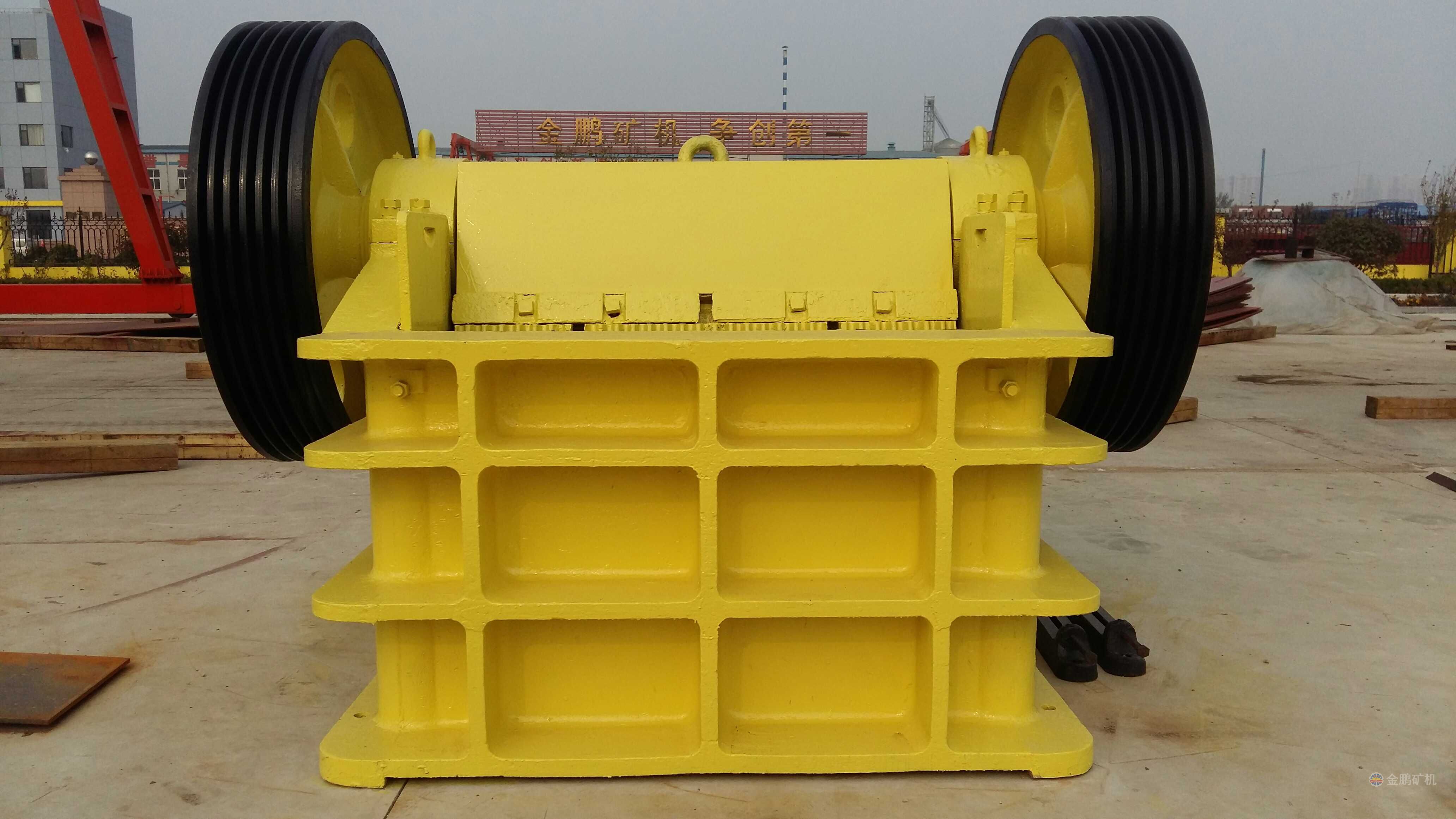 較大型顎式破碎機(jī)大皮帶輪及配重輪與主軸的連接采用漲緊套形式,更換軸承方便。